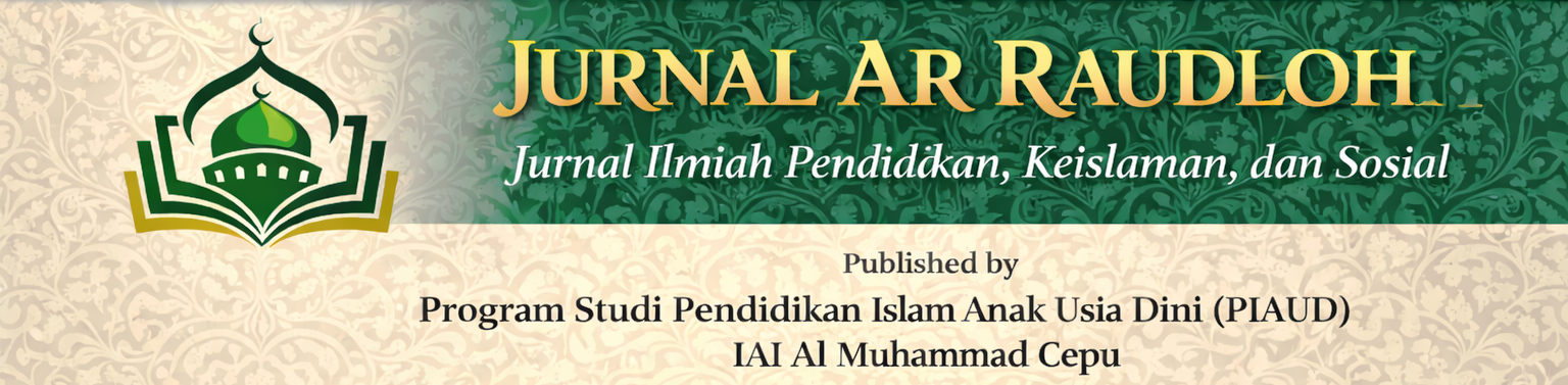Ar Raudloh : Jurnal Pendidikan Anak aims to provide a forum for consideration of issues and for the exchange of information and ideas on research and practice in the field of children’s education in Muslim society. Ar Raudloh Jurnal Pendidikan Anak features original research in children’s education in Muslim society from around the world. With this as its main focus, it should be emphasized that the definition of education contains parenting and its multidisciplinary approach, covering all related fields, including Islamic religion, psychology, sociology, child’s health and social work. Topics of interest include, but are not limited to: